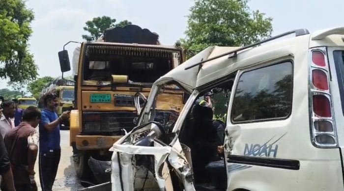 ডেস্ক নিউজ: নাটোরের বড়াইগ্রামের বনপাড়া-হাটিকুমরুল মহাসড়কের তরমুজ পাম্প এলাকায় ট্রাক ও মাইক্রোবাসের মুখোমুখি সংঘর্ষে ৬ জন নিহত হয়েছেন। বুধবার সকাল ১০টার দিকে এ মর্মান্তিক দুর্ঘটনা ঘটে। নিহতরা সকলেই মাইক্রোবাসের যাত্রী
