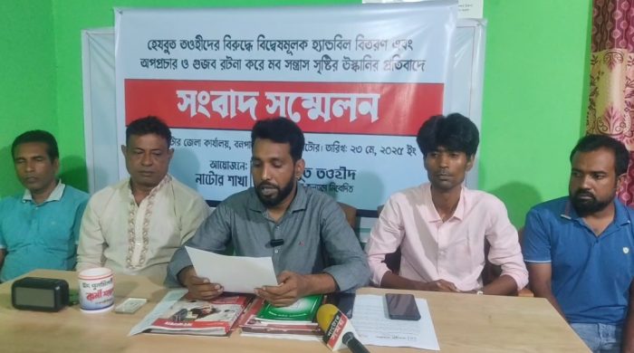বড়াইগ্রাম (নাটোর) প্রতিনিধি: নাটোরের বড়াইগ্রাম উপজেলার বনপাড়া এলাকায় হেযবুত তওহীদের বিরুদ্ধে ধর্মব্যবসায়ী গোষ্ঠীর পরিকল্পিতভাবে সহিংস জনতা (মব) গঠনের চেষ্টা প্রশাসনের সময়োচিত হস্তক্ষেপে ব্যর্থ হয়েছে। ২৪ মে সকাল ১০টায় স্থানীয় কিছু