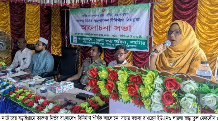 দেলোয়ার হোসেন লাইফ, স্টাফ রিপোর্টার: নাটোরের বড়াইগ্রামে ‘তারুণ্য নির্ভর বাংলাদেশ বিনির্মাণ’ শীর্ষক আলোচনা সভা ও সাংস্কৃতিক অনুষ্ঠান অনুষ্ঠিত হয়েছে। মঙ্গলবার (২৭ মে) দুপুরে জেলা তথ্য অফিসের উদ্যোগে রয়না ভরট সরকার